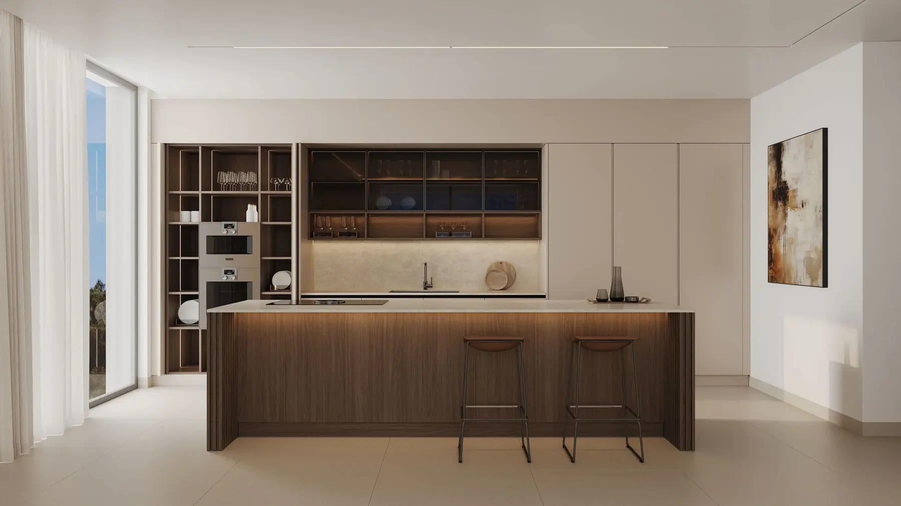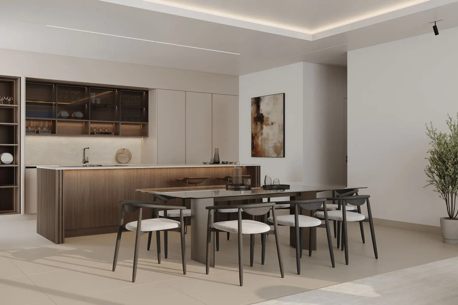 Toutes les résidences bénéficient d’intérieurs conçus par le studio Gunni & Trentino, apportant une esthétique raffinée et naturelle à l’ensemble du projet.