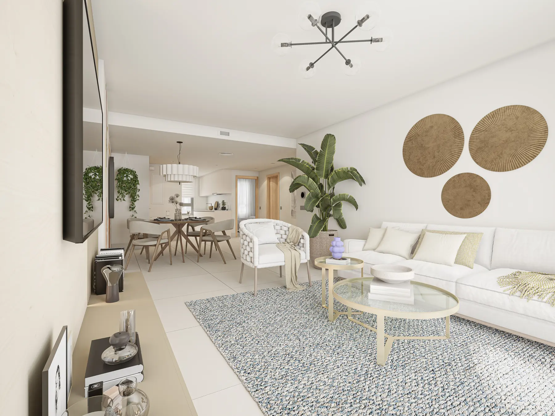 Le programme propose une sélection d’appartements modernes de 2 et 3 chambres, conçus pour offrir confort, luminosité et harmonie avec le paysage environnant. Chaque logement dispose de 2 salles de bains complètes, d’espaces de vie ouverts et d’une terrasse privée permettant de profiter pleinement de la vie en extérieur tout au long de l’année.