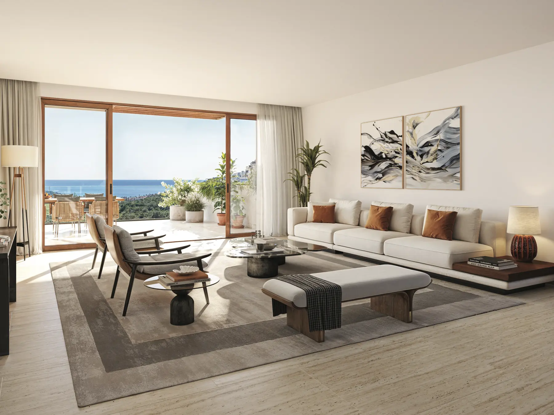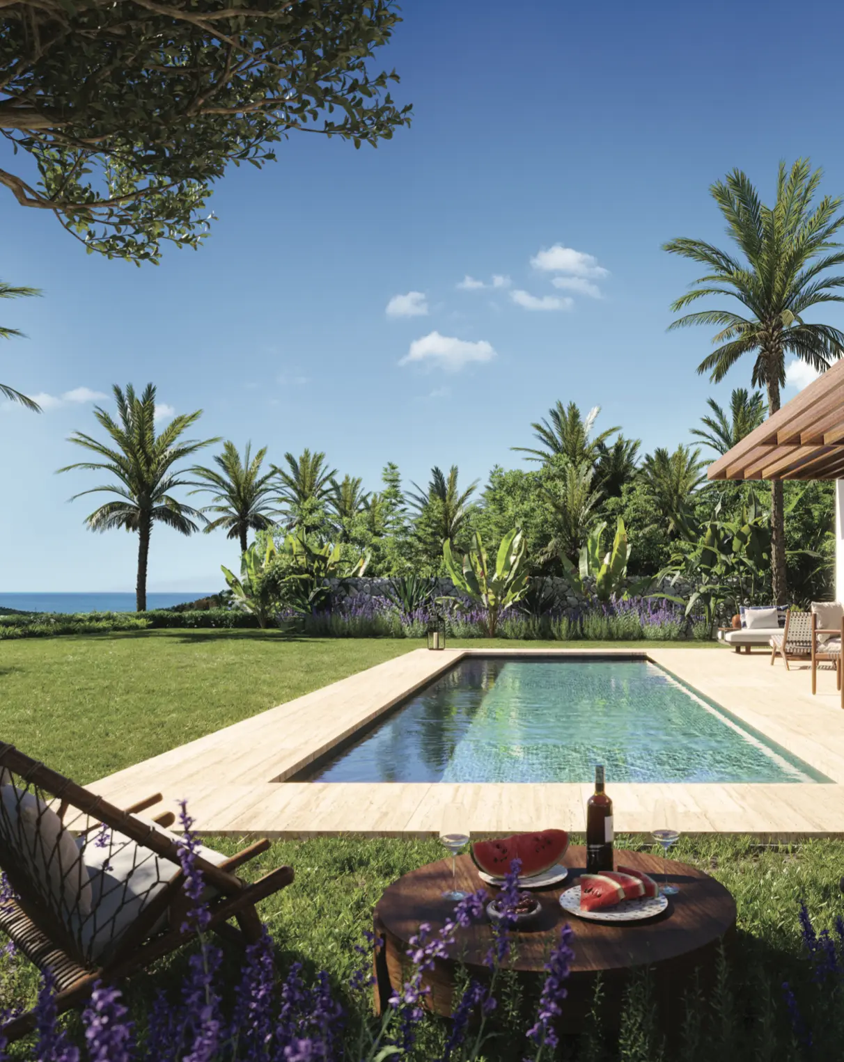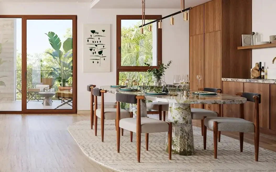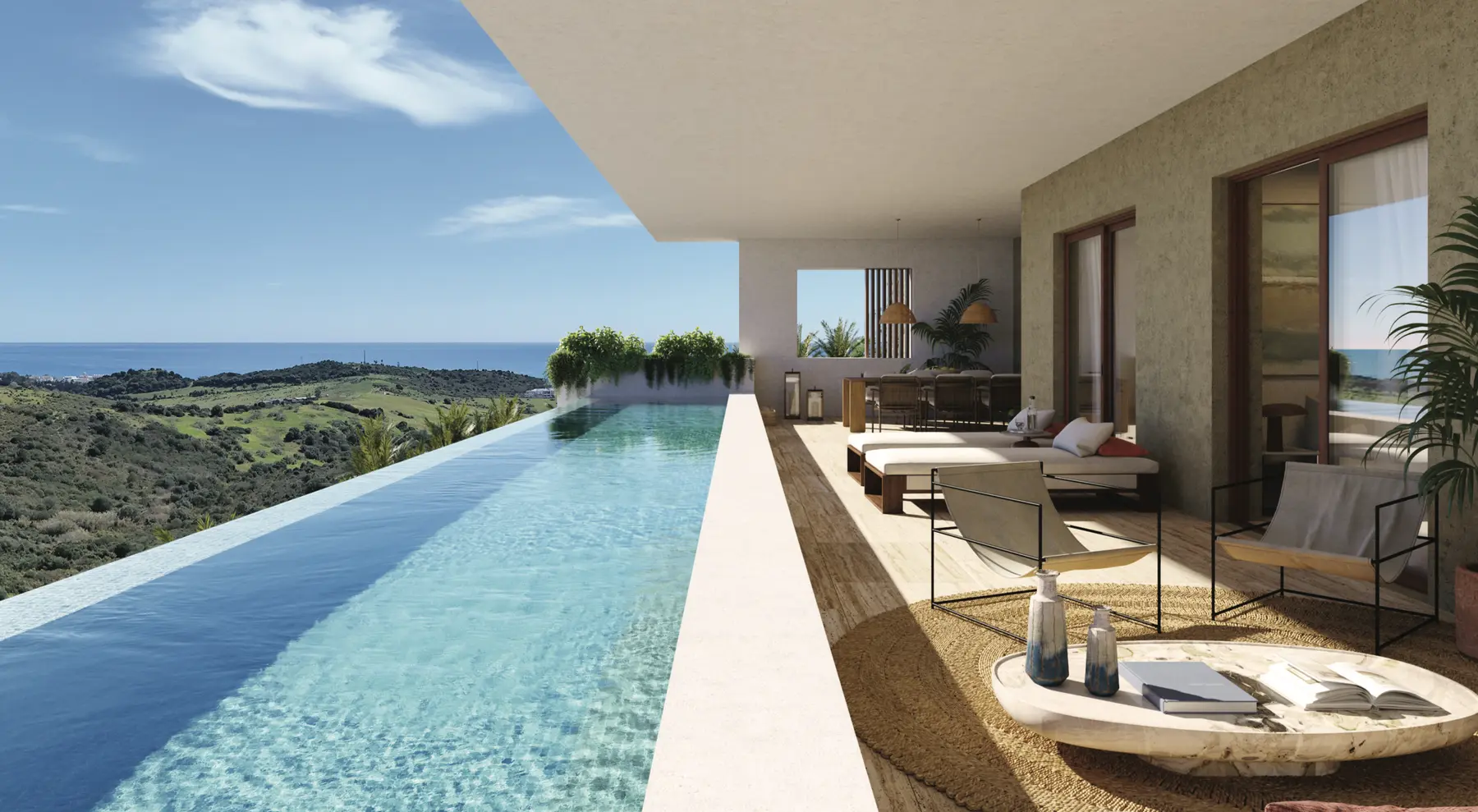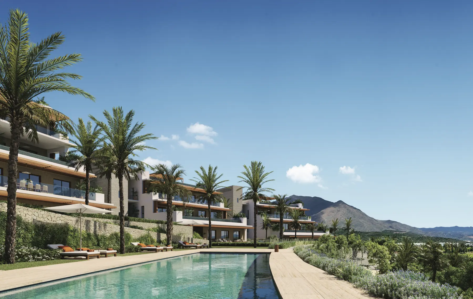 Chaque résidence offre des vues imprenables sur les montagnes, les jardins paysagers et les fairways du parcours de golf, tandis que certains penthouses dévoilent des aperçus sur la Méditerranée.