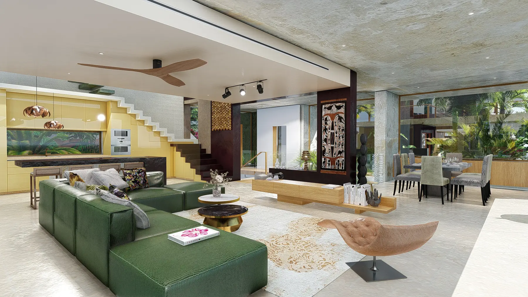 Les extérieurs sont pensés comme des havres de paix, sans murs massifs. La végétation et l’aménagement créent intimité, élégance et lien avec la nature.