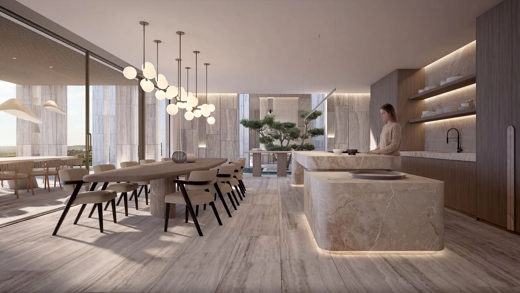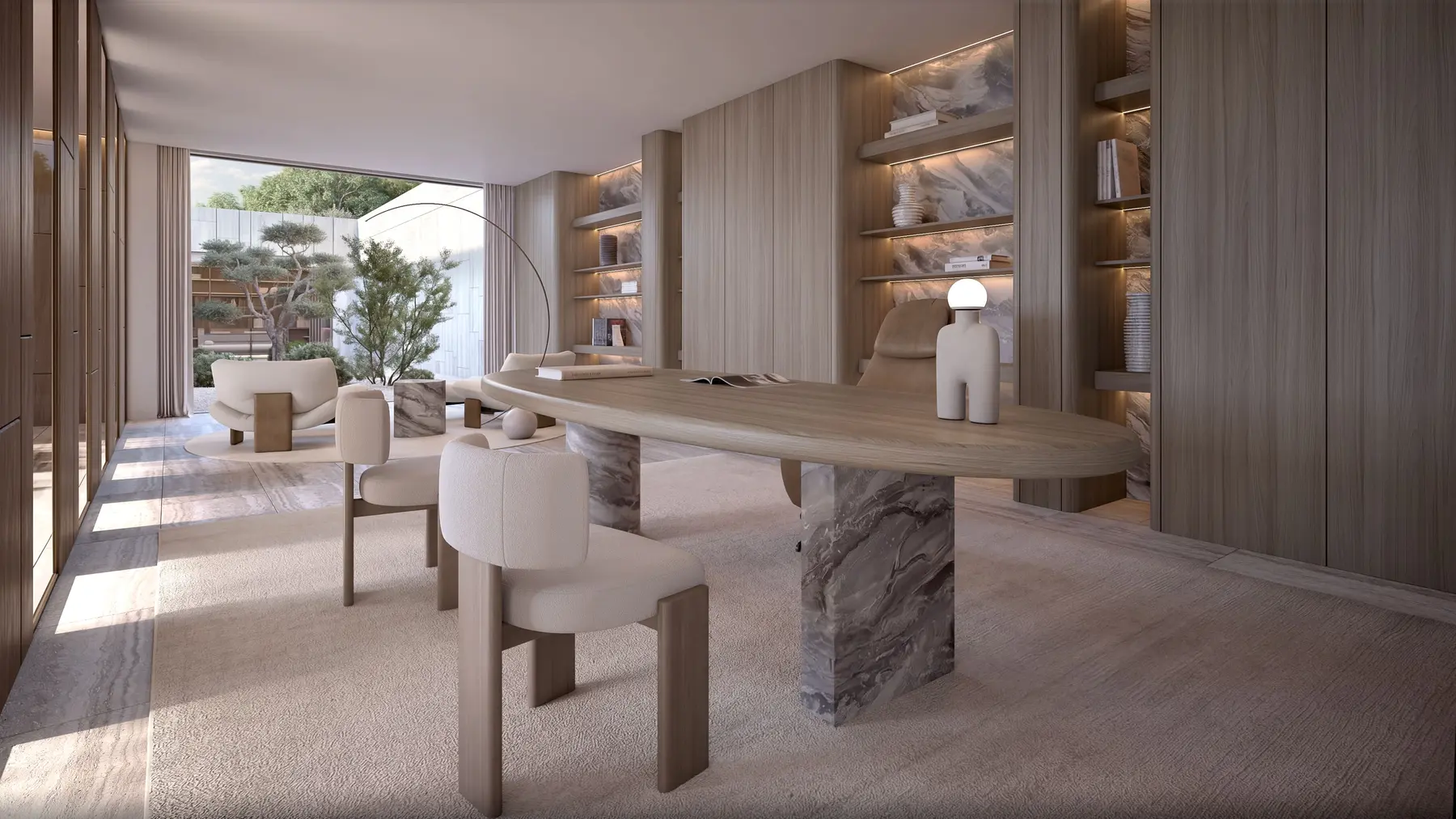 Avec près de 4 000 m² construits sur trois niveaux, VILLA NARA offre un équilibre rare entre générosité des volumes et précision des espaces.